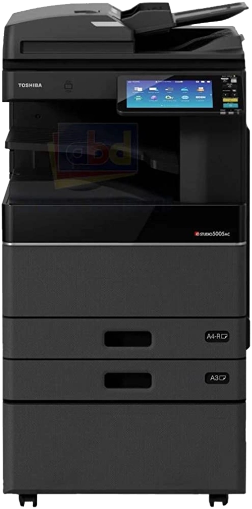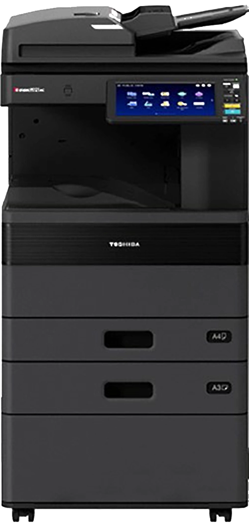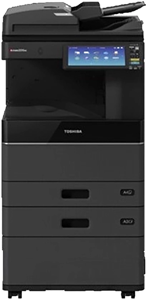 Standard floor-standing devices are used for shared printing in offices and departments.